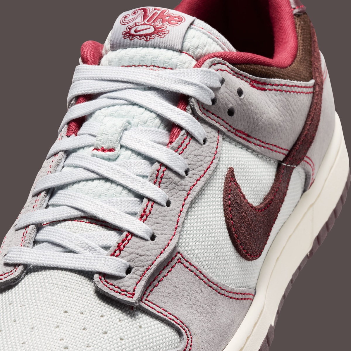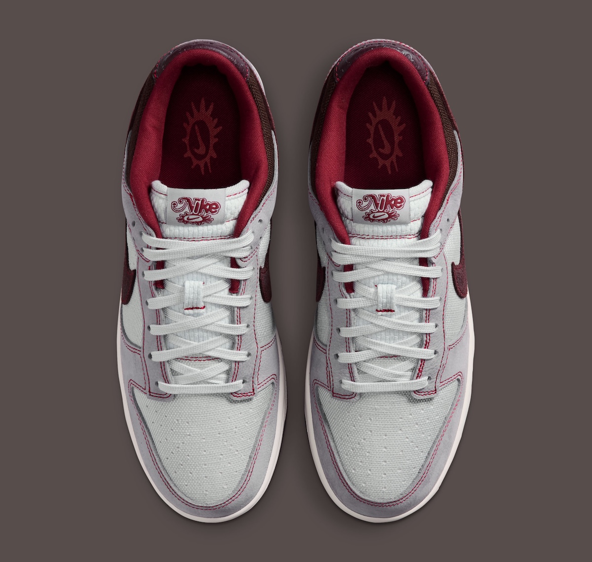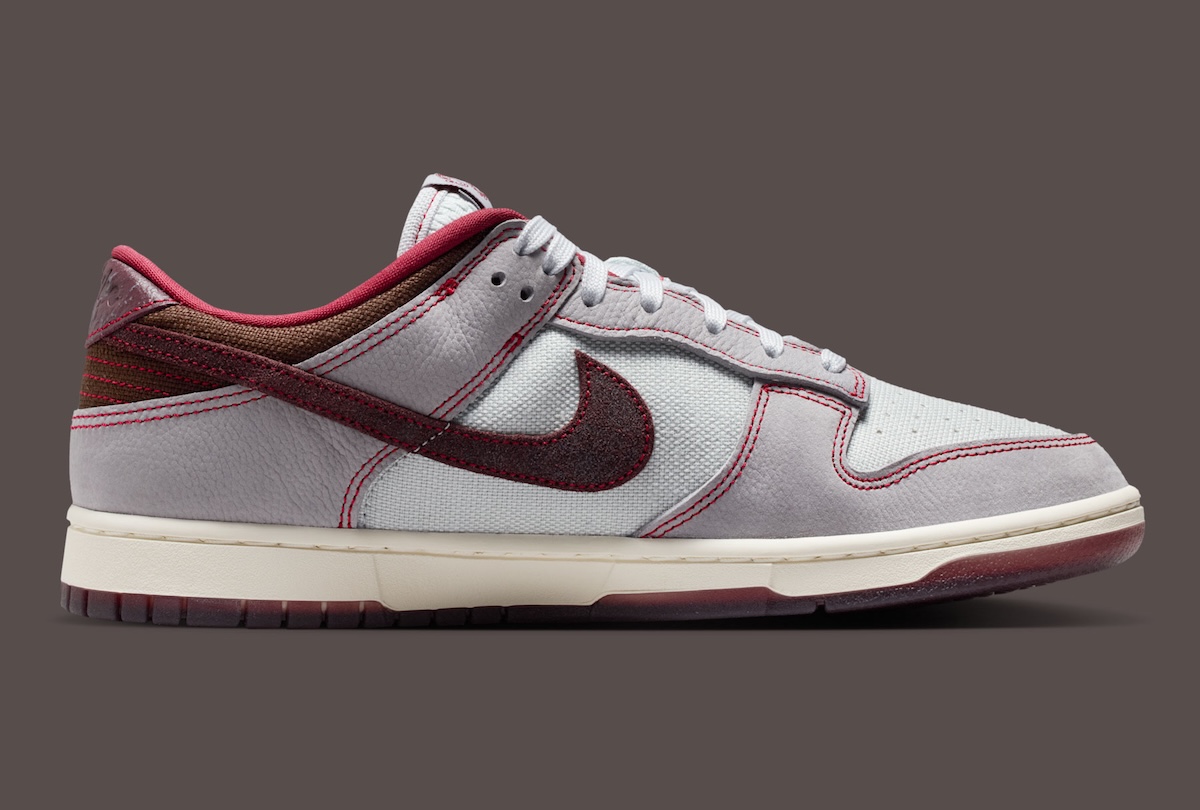 The Nike Dunk Low Canvas “Pure Platinum/Burgundy Crush” will drop Summer 2026 on Nike.com and select retailers.