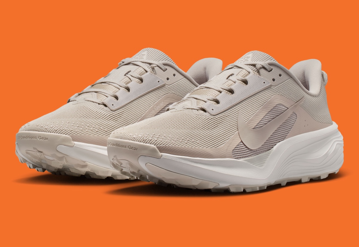 There is also a strong mix of utility and comfort here. Tonal laces, side netting, a reinforced toe, and a padded collar keep the silhouette rooted in trail performance, while the softer color blocking makes this ACG runner easy to wear off the path too.