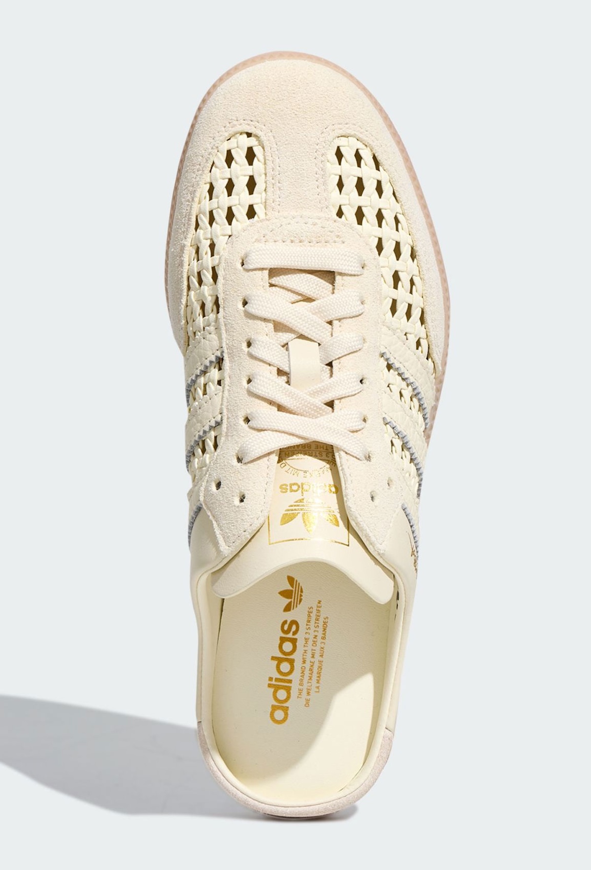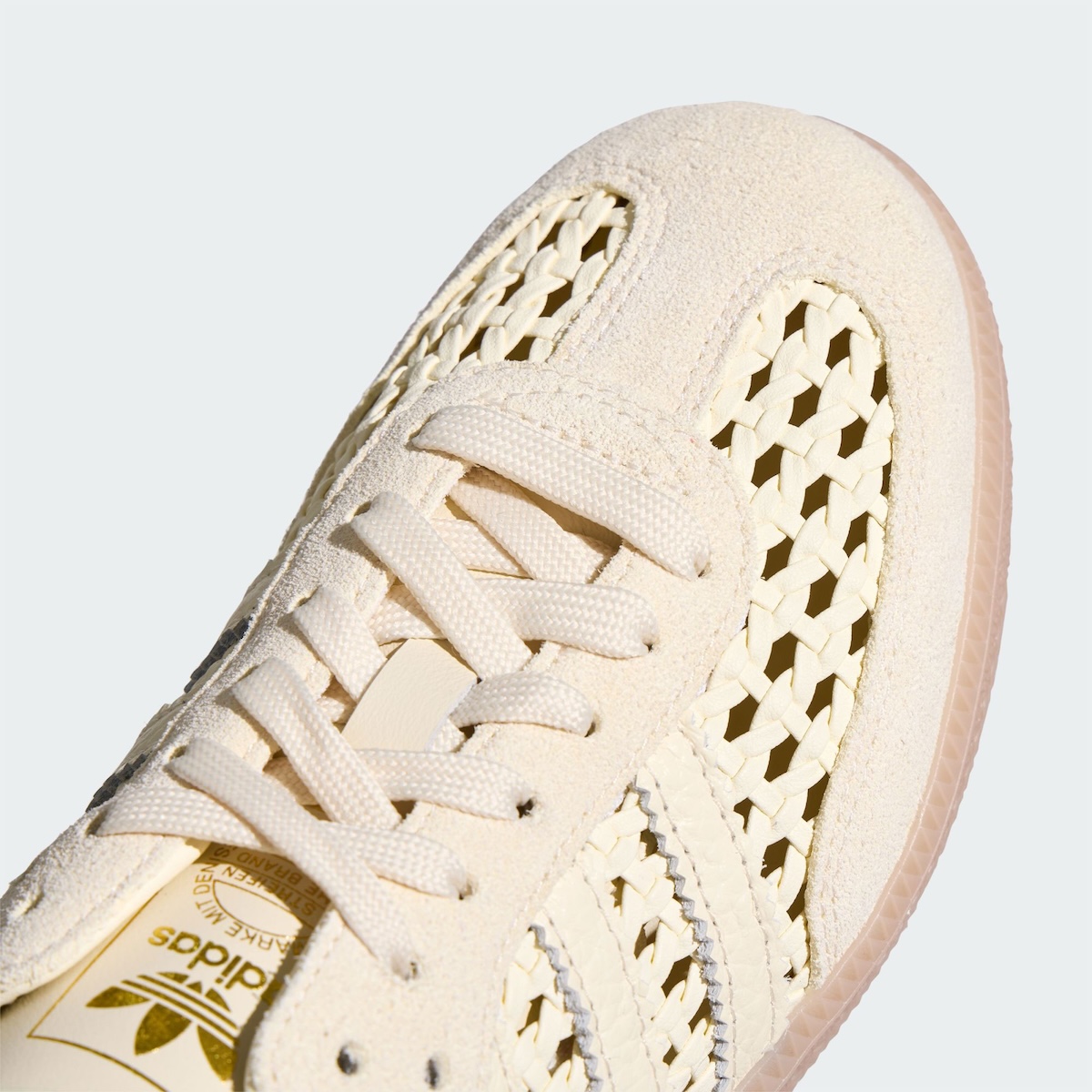 Starting at the top, that update begins with the upper. Swapping out the traditional leather construction for a woven style, the shoe instantly takes on a breathable, textured aesthetic. It feels lightweight and relaxed, while maintaining the low-top silhouettes that have helped keep the Samba relevant year-round. It’s less of a rework and more of a refreshing update for the season.