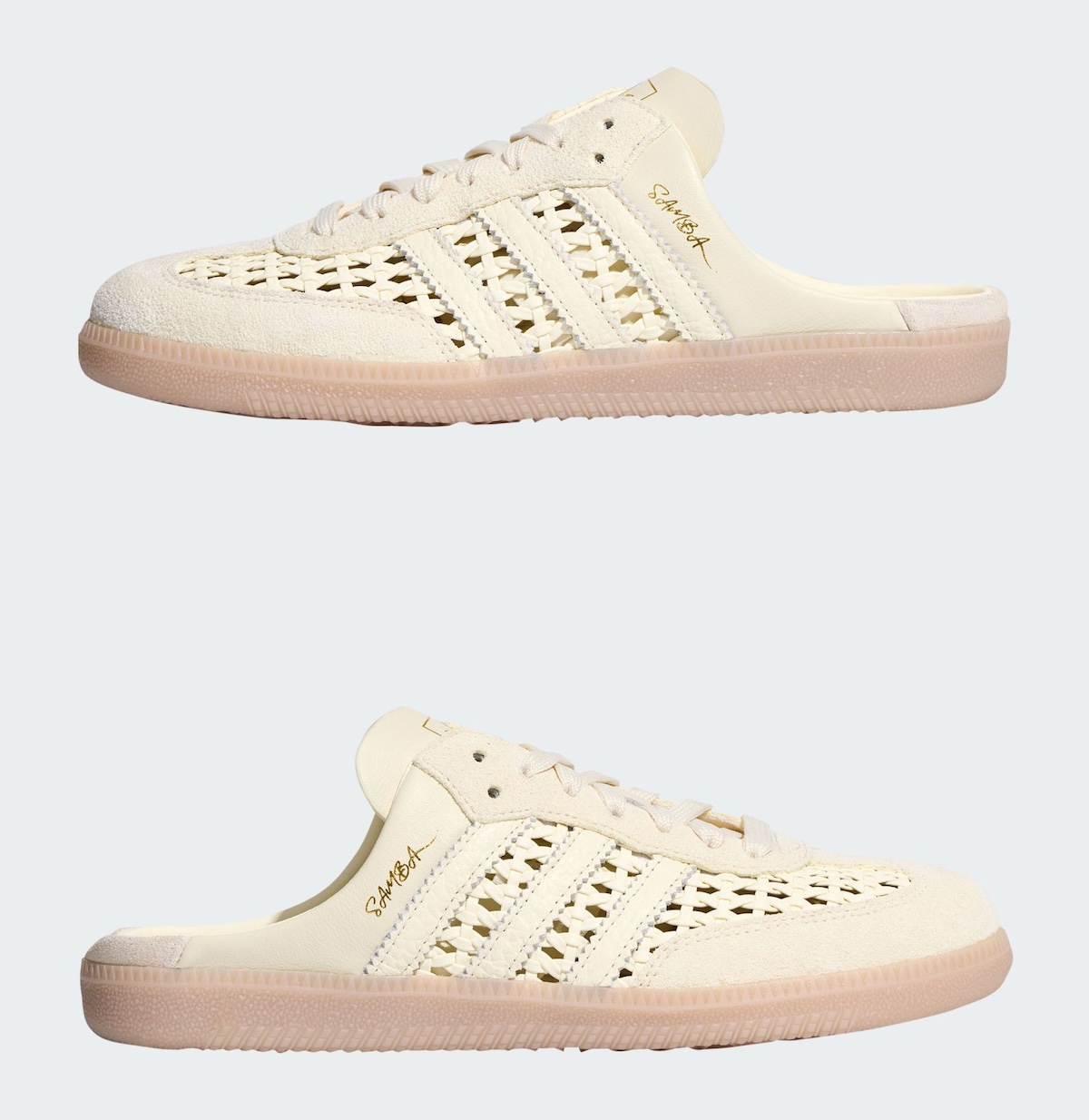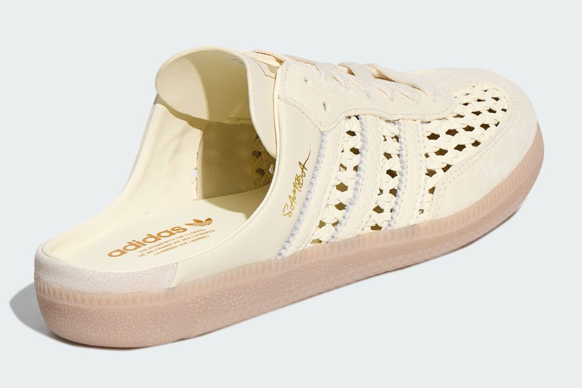 The adidas Samba Mule Woven “Crew White” is expected to release in Summer 2026 through adidas.com and select retailers.