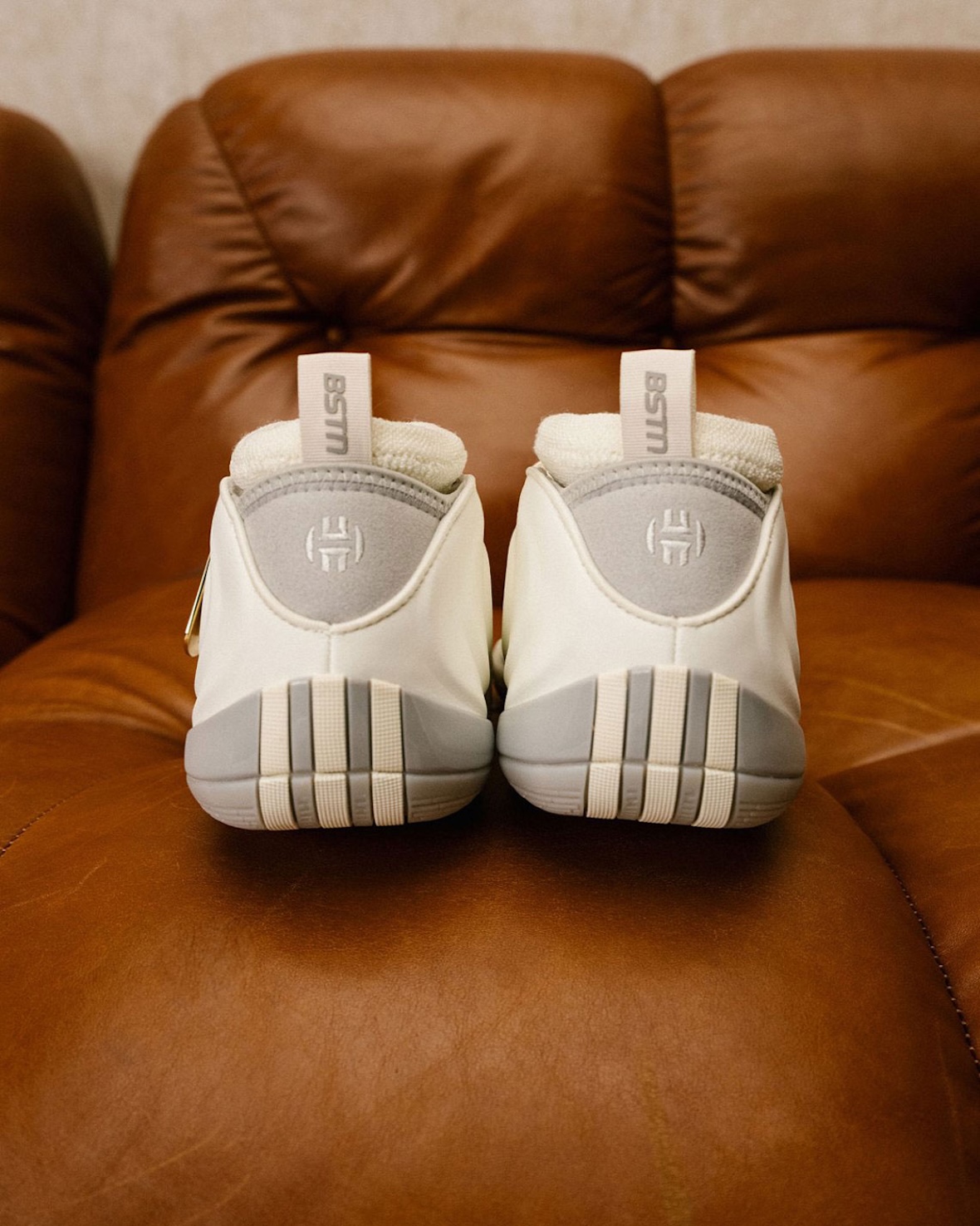 The adidas Harden Vol. 10 carries the strongest version of the theme, mixing crisp white panels with off-white accents and a smoky translucent outsole underneath. The BW Army keeps things more familiar, sticking with its classic gum sole and a clean neutral color story that fits the pack perfectly. The EVO SL changes the pace a bit, using a black-to-white gradient upper that gives the collection its most eye-catching finish.