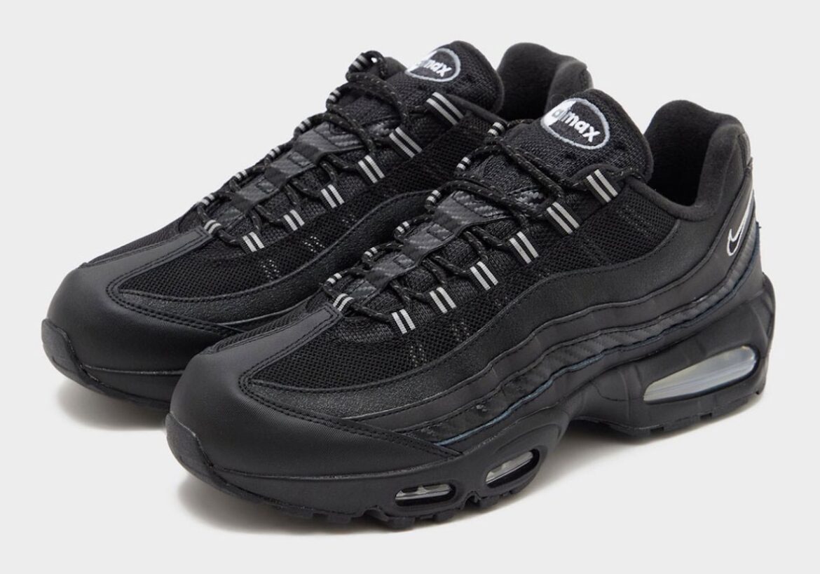 The upcoming Nike Air Max 95 “Carbon Fiber” leans heavily on texture through an almost all-black design. Retailer images show a layered mix of finishes across the upper, giving each panel its own look and helping the shoe feel more dimensional. The dark color blocking stays consistent throughout, while the varied materials add depth without relying on brighter colors or extra branding.