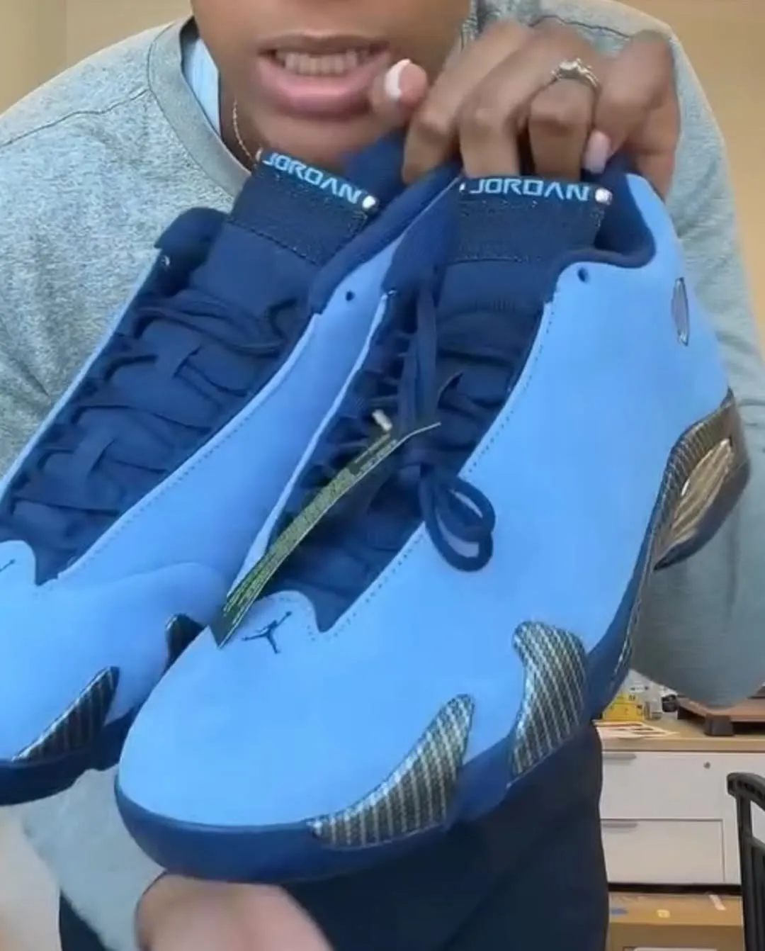 UNC has a new Air Jordan 14 PE, and it arrives in a clean University Blue makeup that fits right into Jordan Brand’s long history with Chapel Hill. The pair covers the upper in light blue suede, giving the model a smooth school-driven look that immediately stands out.