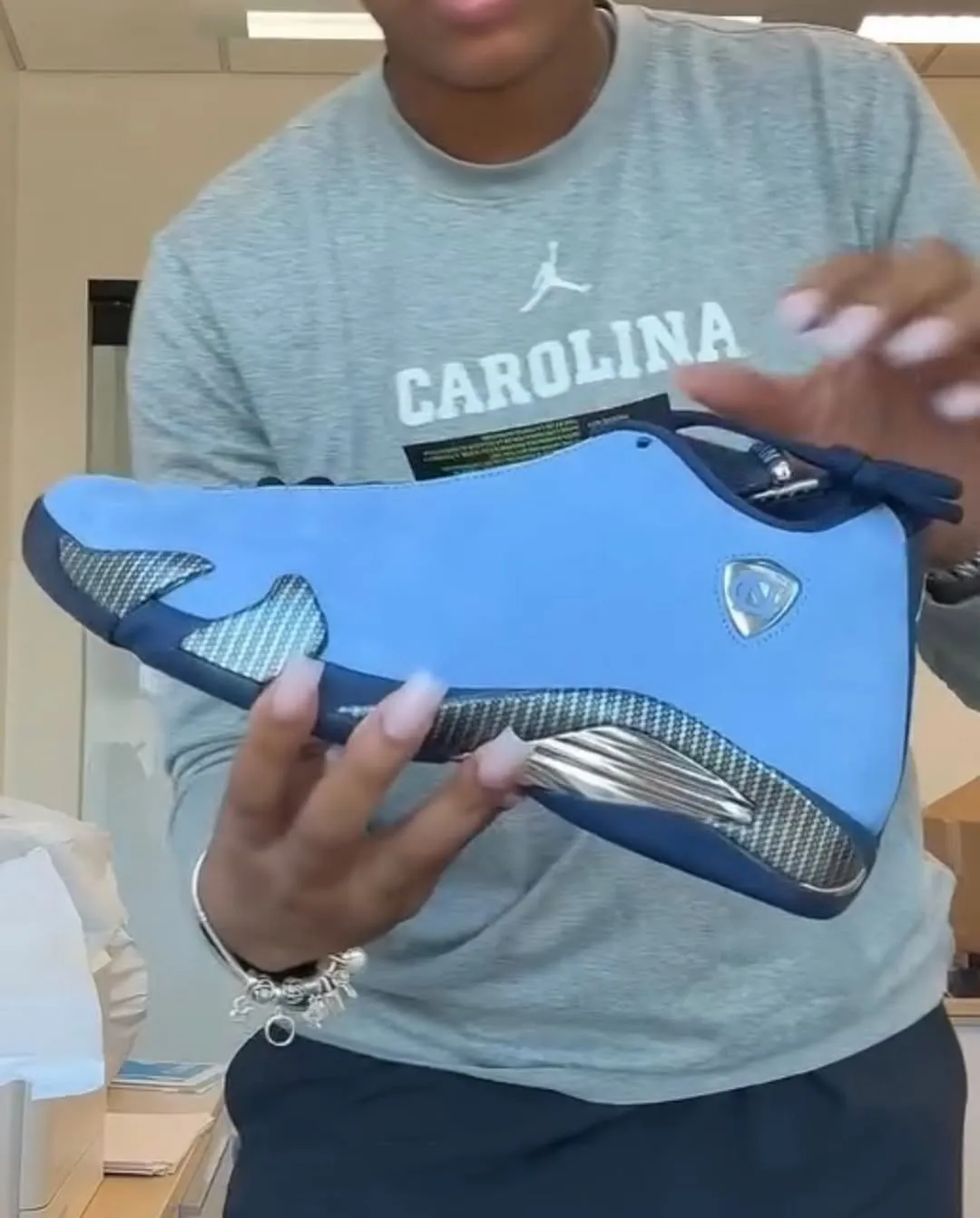 The Air Jordan 14 UNC PE is not expected to release to the public. For now, this one looks set to remain exclusive to the program, but it still offers a strong look at how Jordan Brand continues to treat North Carolina with some of its best player-only designs.