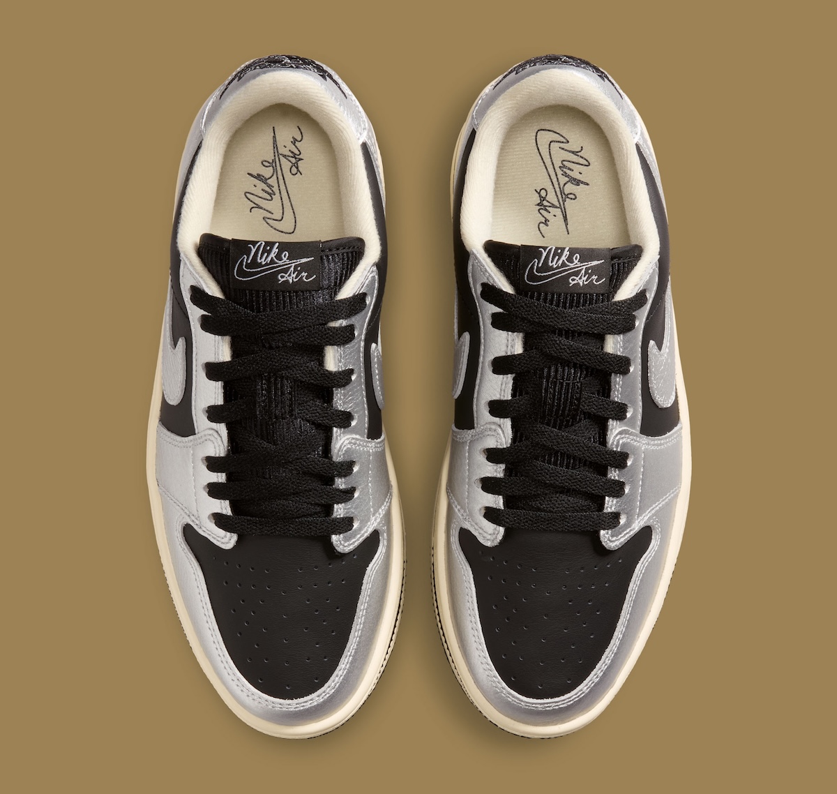 Metallic Silver overlays wrap the mudguard, eyestays, heel, and Swoosh, bringing a bright reflective look to the upper. Black leather underlays balance that shine nicely, giving the shoe stronger contrast and making the silver panels pop even more. The mix feels clean and easy to style, which should help this pair land with both Jordan fans and buyers looking for something more statement-driven.