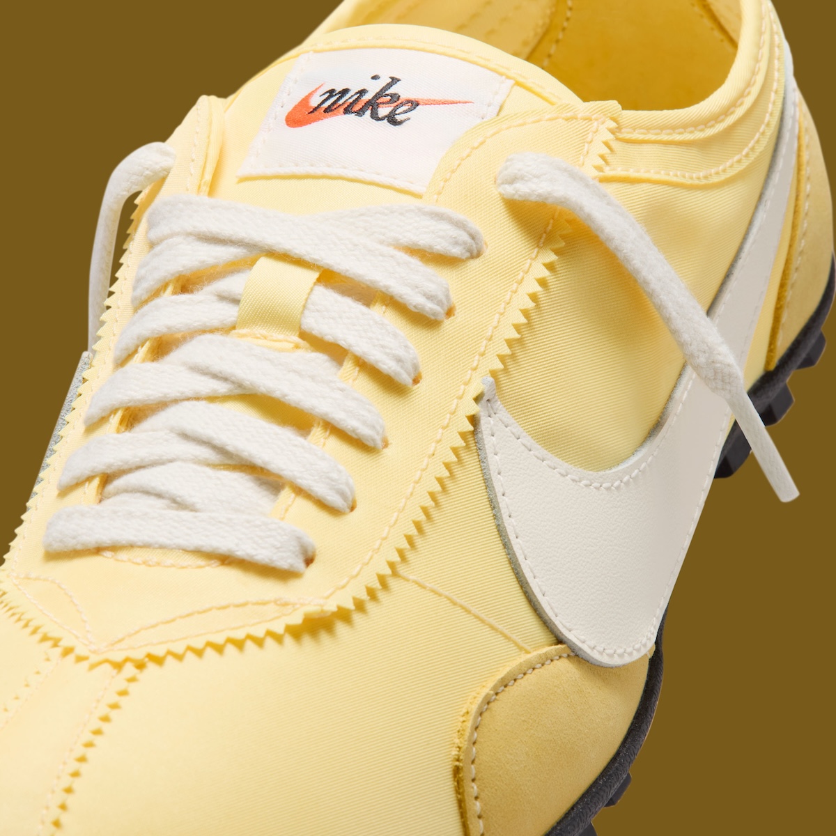 Stretching across both sides are Soft Pearl leather Nike Swooshes, providing smooth contrast that compliments the upper. Cream laces and a traditional woven Nike tongue tag lean further into the retro direction, while the exposed zig-zag trim adds a slightly raw detail that makes the build feel more interesting up close. A mini embroidered Swoosh on the heel also helps round out the design with a subtle branded touch.