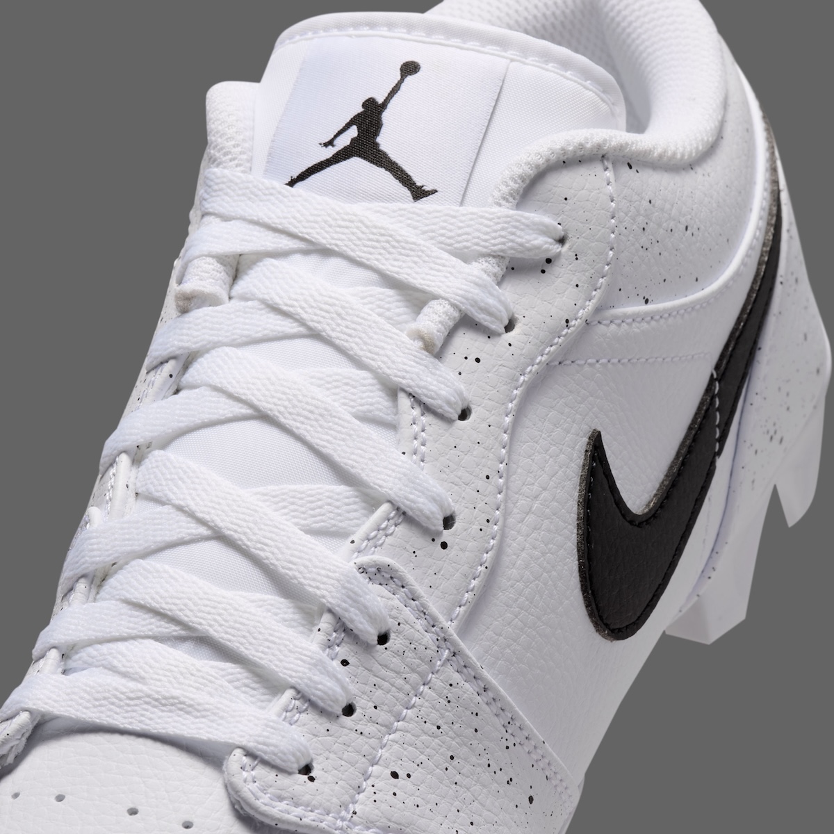White studs underfoot keep the color blocking consistent and push the design even closer to that all-white, performance-ready finish. Jordan has used the Air Jordan 1 Low TD Cleat as a canvas for lifestyle-inspired makeovers before, but this “White Cement” colorway stands out because it taps into one of the brand’s most beloved visual cues without losing its athletic purpose.