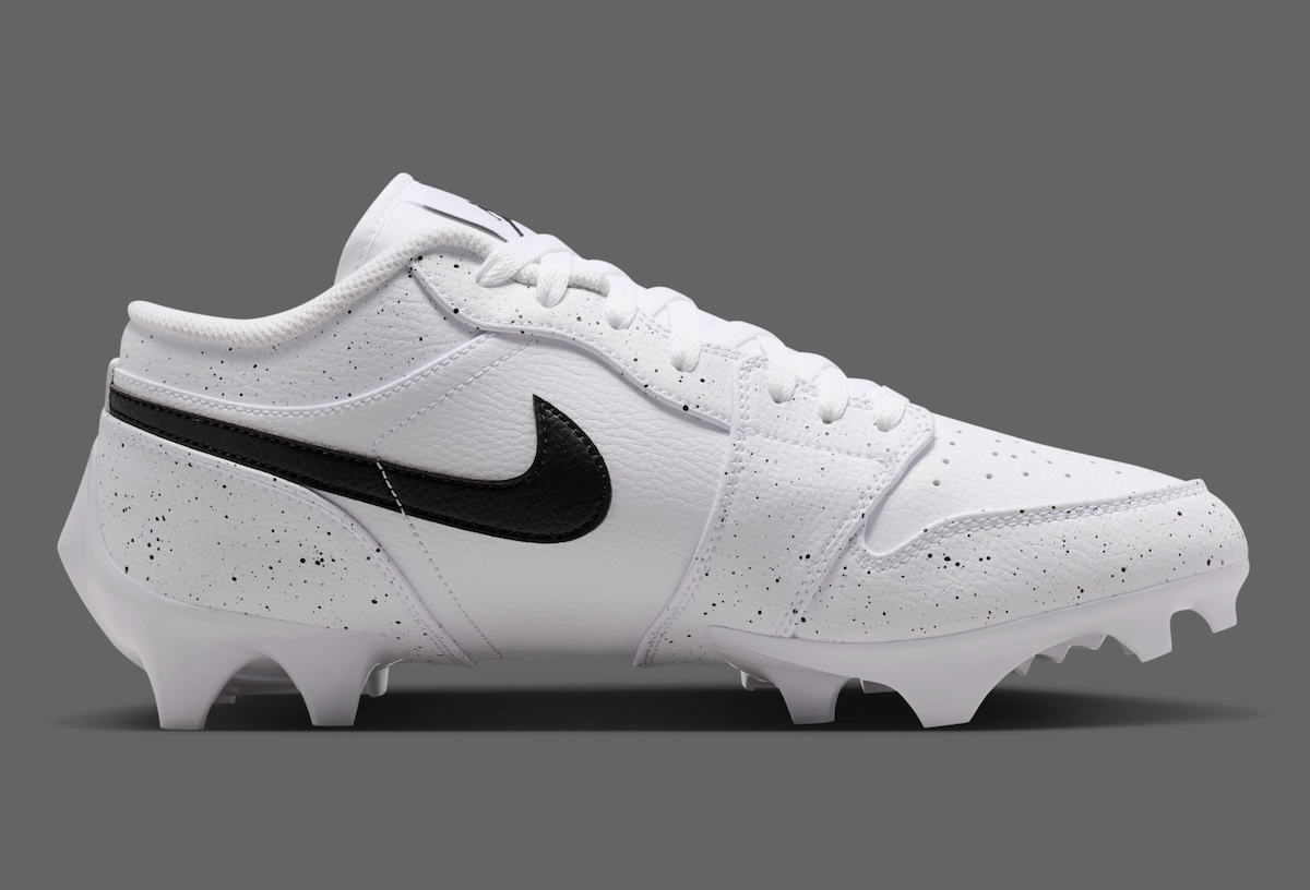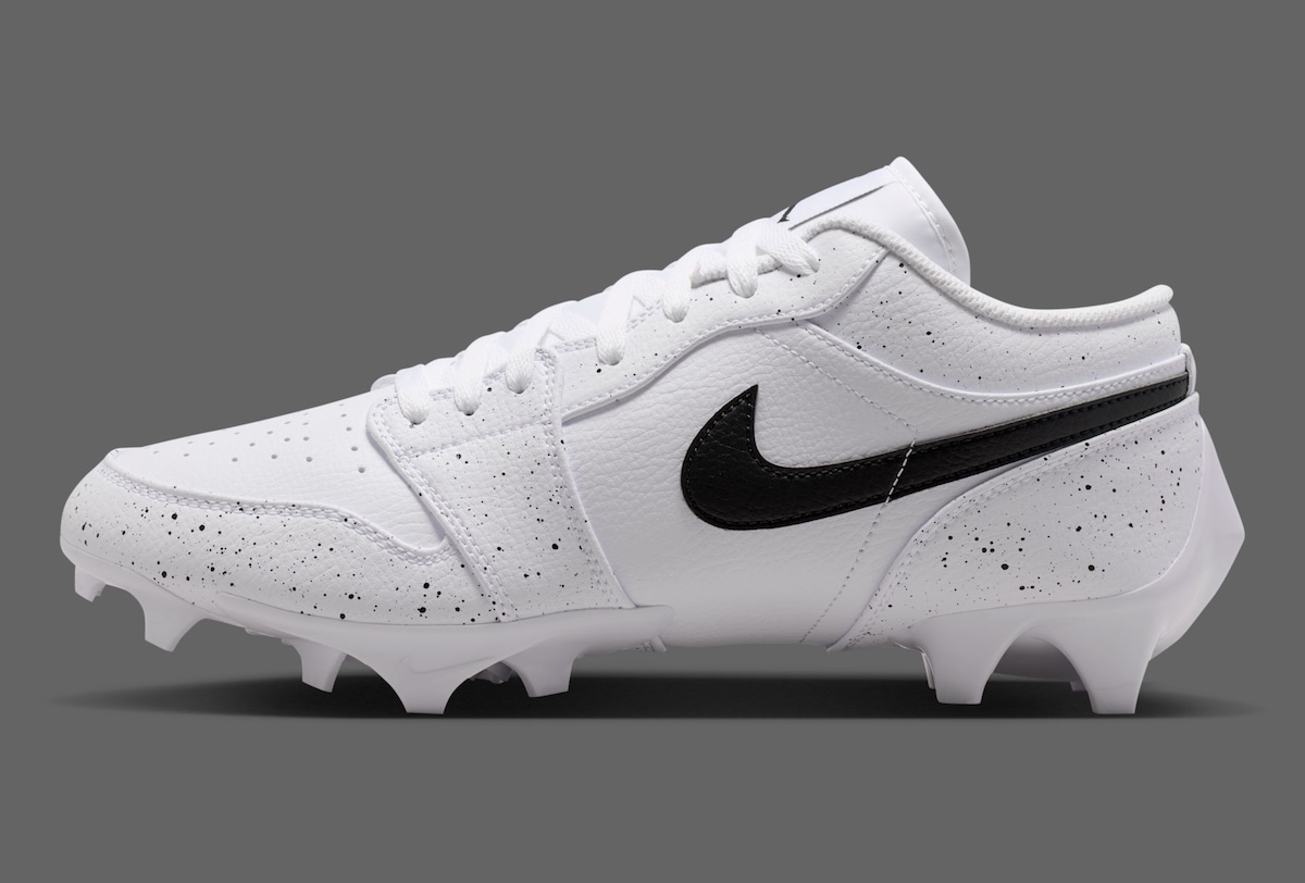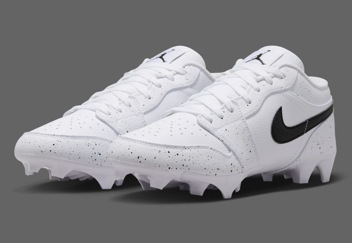 One of Jordan Brand’s signature style motifs will soon be making its way to the football field in the form of the Air Jordan 1 Low TD Cleat “White Cement” edition. Rather than overthinking the shoe, this colorway features a clean canvas of white leather topped with black speckled overlays to add some of that AJ3 inspiration to the classic football sneaker silhouette.