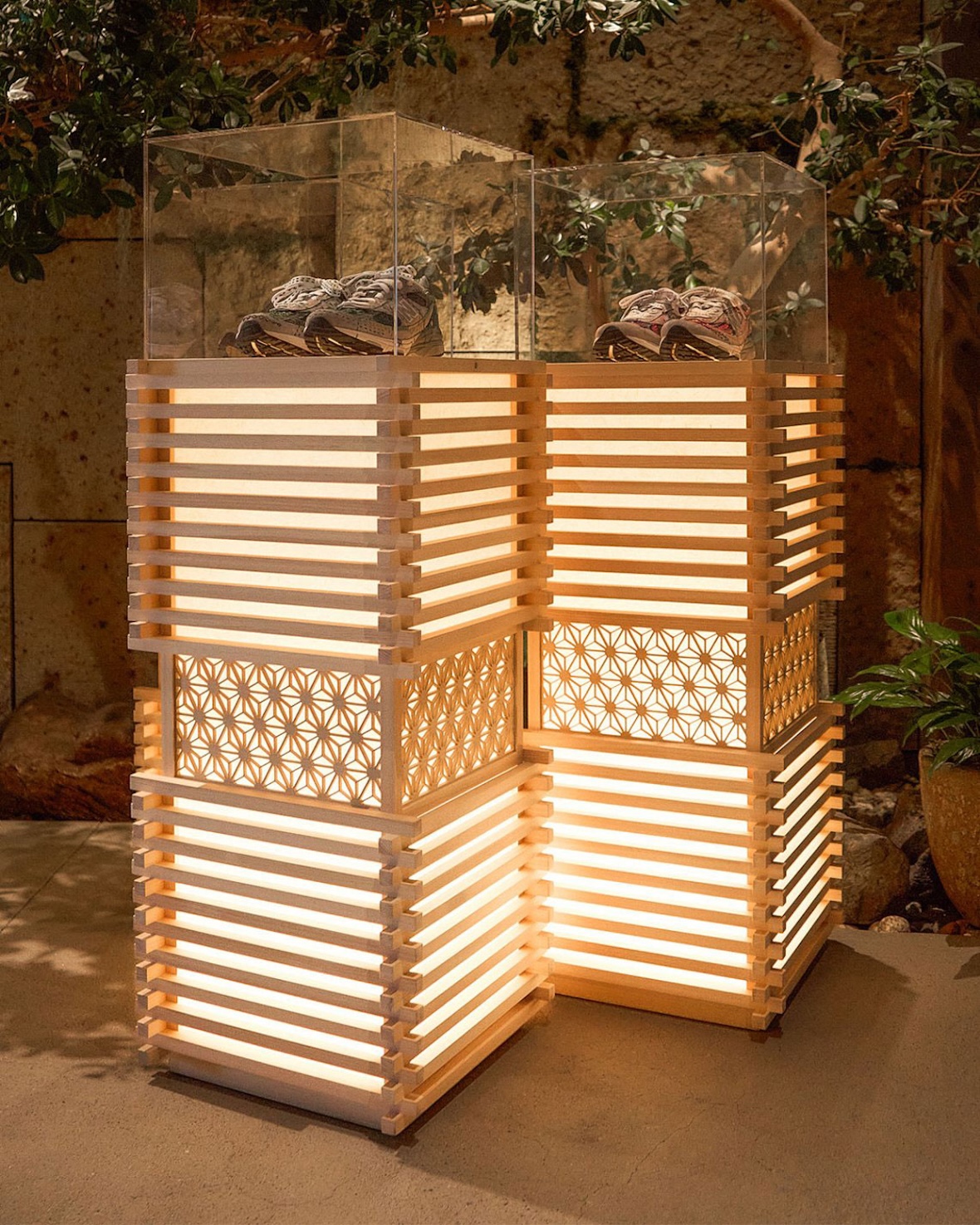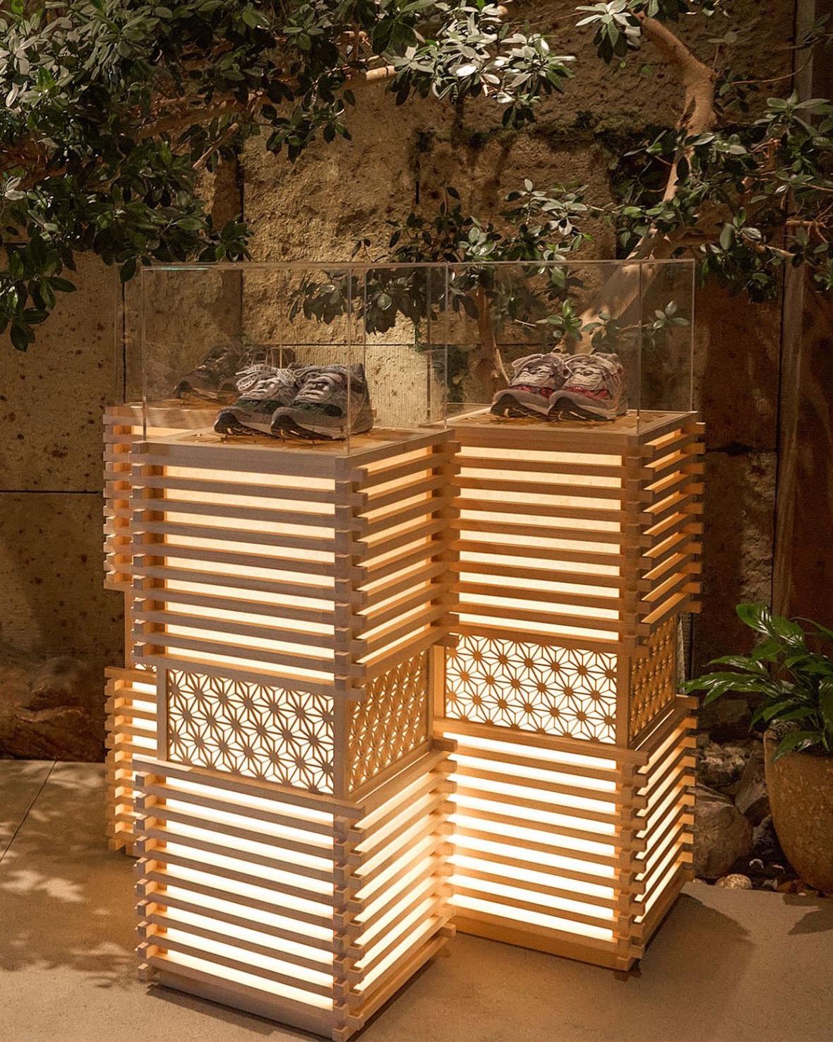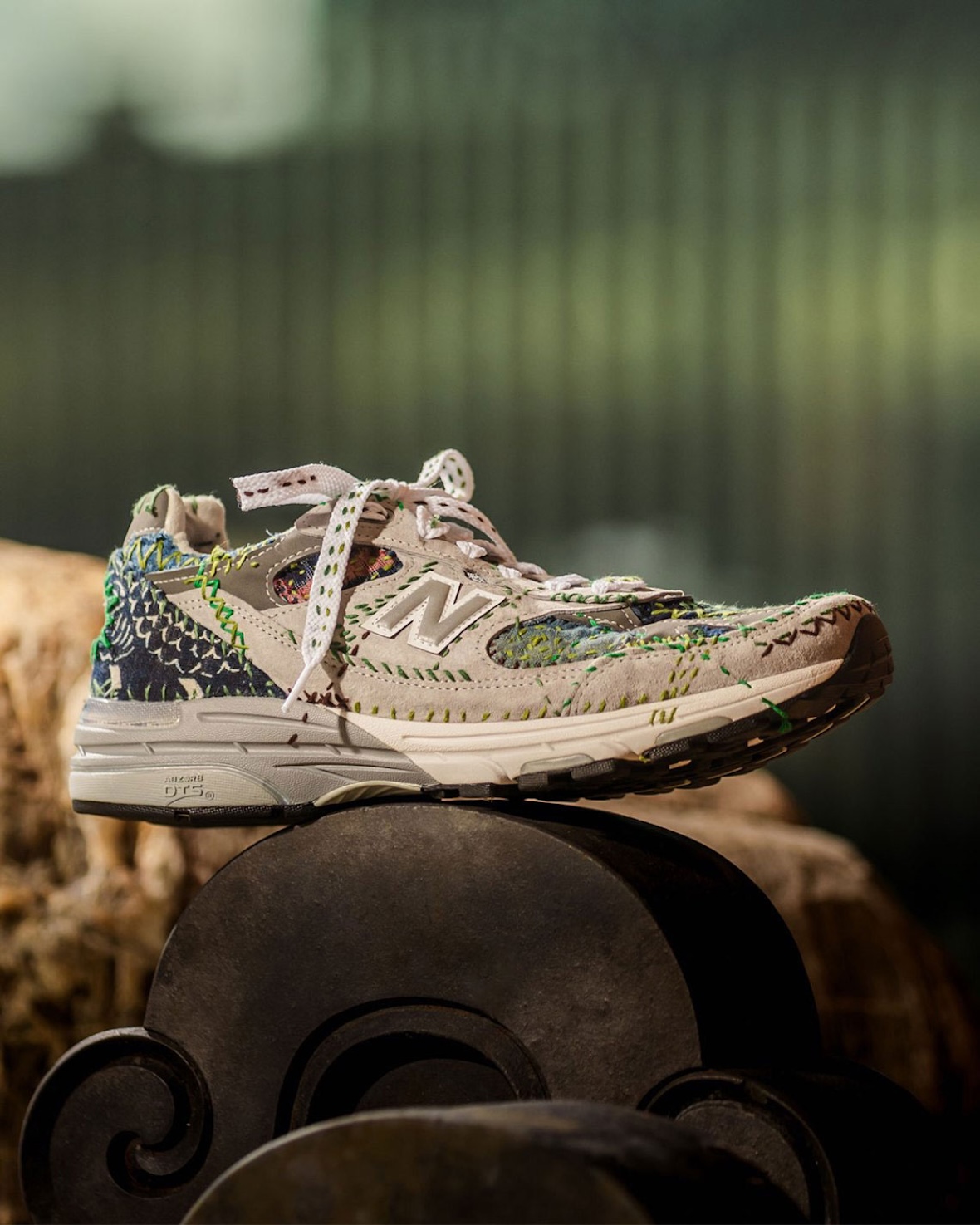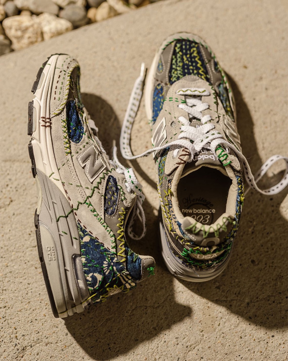 Each pair stands out through visible hand-stitching, layered textile panels, and patchwork details that bring Sashiko Gals’ signature approach to the New Balance 993. The mix of traditional repair-inspired techniques and premium New Balance construction gives the shoe a one-off feel, while the earthy setting at 1 Hotel Tokyo adds even more depth to the presentation. From the exposed stitching to the fabric swaps, the design leans heavily into craft, reuse, and Japanese textile influence.