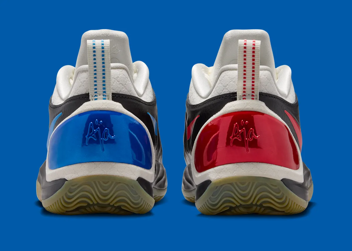 Reflective heel panels bring in one of the pair’s standout features with a WNBA-inspired color split. Blue appears on the left shoe, red is placed on the right, and iridescent WNBA logos on the tongue continue the anniversary theme with a more celebratory finish. The result is a sharp colorway that connects A’ja Wilson’s latest signature shoe to one of the biggest milestones in league history.