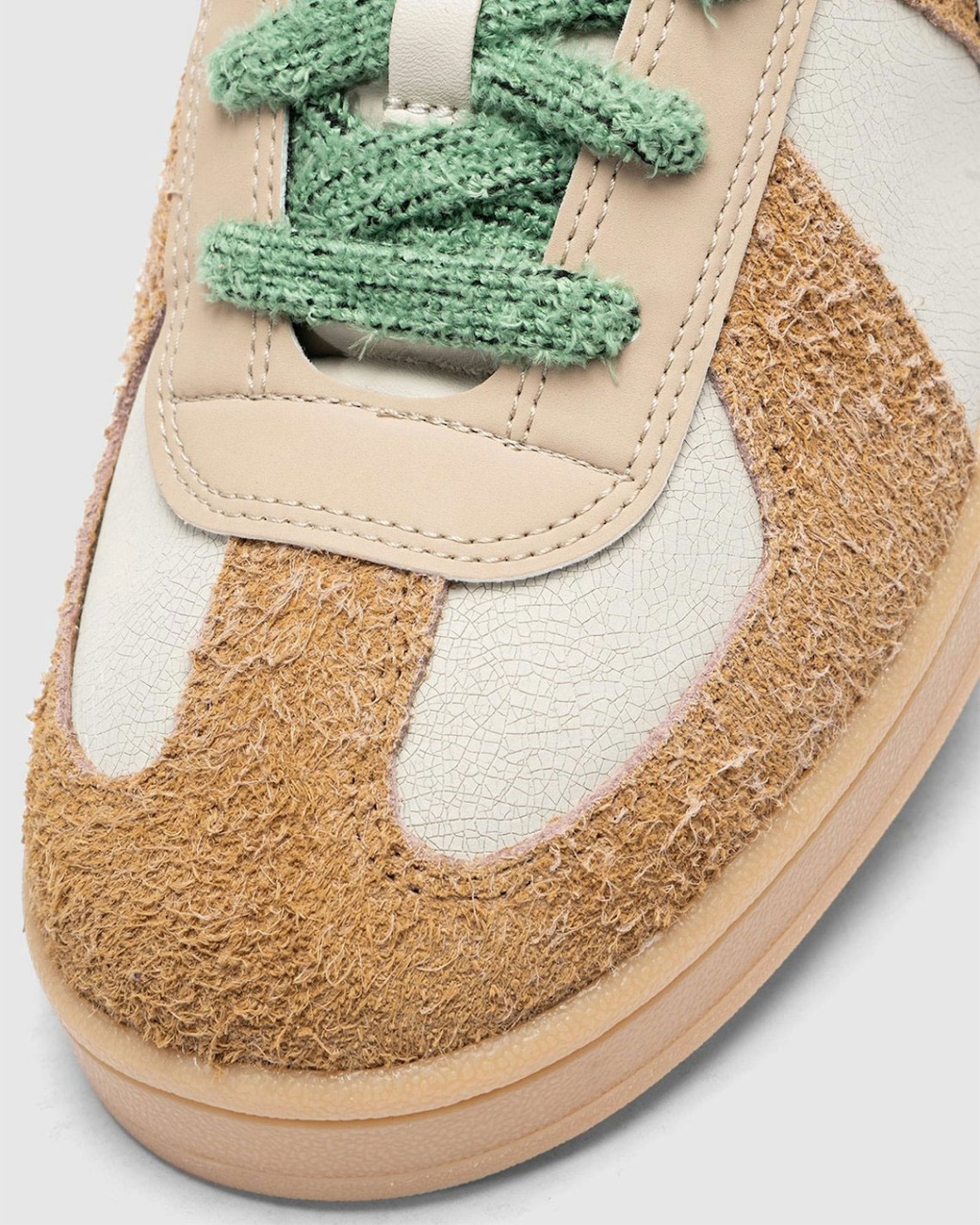 Leaving streetwear sneakers buffs with two colorways to choose from, the adidas BW 00s come in Cream and Clay/Navy colorways. Both are finished with cracked leather uppers, hairy suede overlays, and fuzzy laces. The design also keeps the Do Not Duplicate identity going with the familiar half-circle serrations near the eyestay, while off-set tongue branding gives the pair a fresh detail. Rounding out the drop are two adidas Handball Spezial styles, arriving in Green and Yellow/Purple.