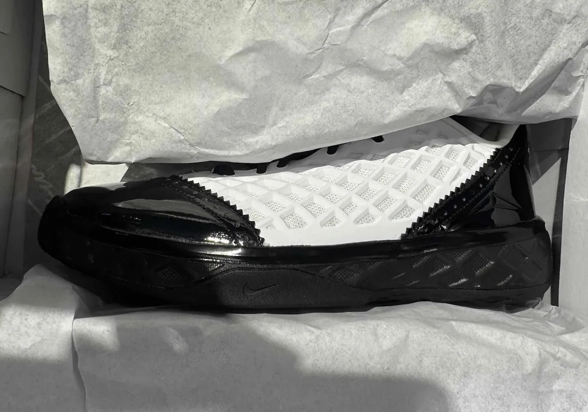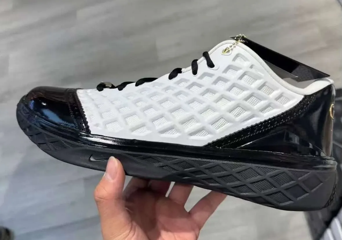 White netted paneling covers most of the upper, while glossy black patent leather wraps the toe and heel for a sharper, more formal look. Wingtip-style edges add another layer to the design, and gold detailing near the heel ties the pair back to the “Mambacita” story. The Kobe 3 Low Protro already looks like a major focus for Kobe Brand moving forward, and this release gives the silhouette another important moment early in its rollout.