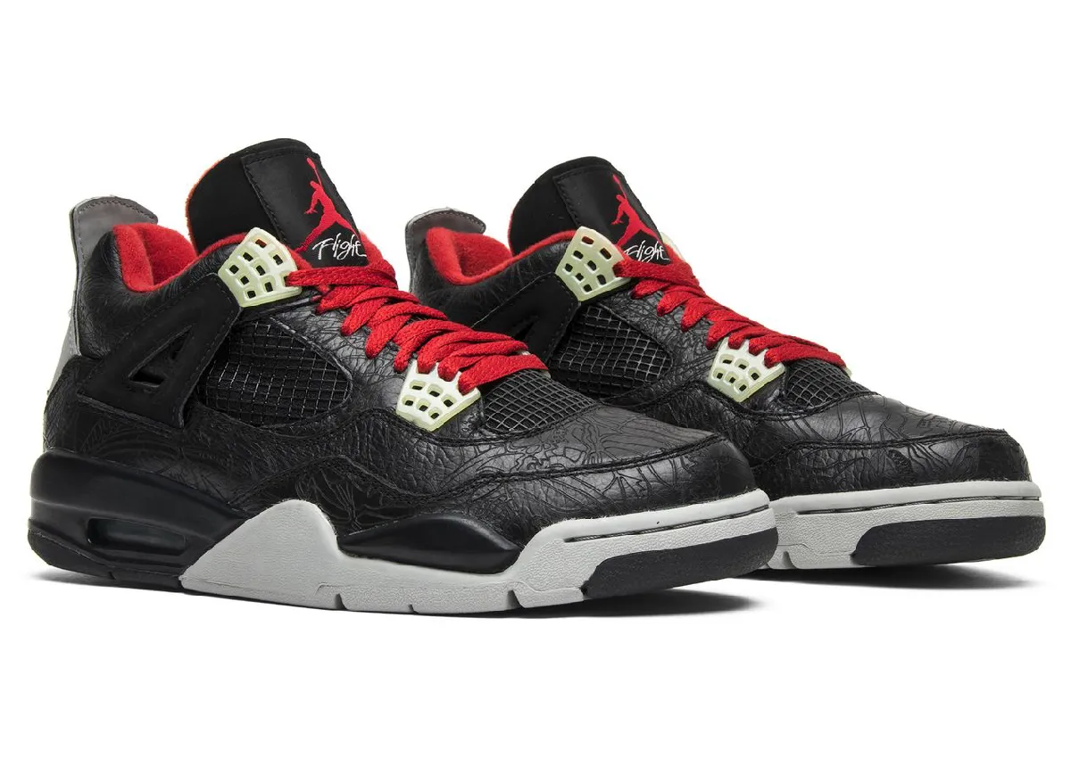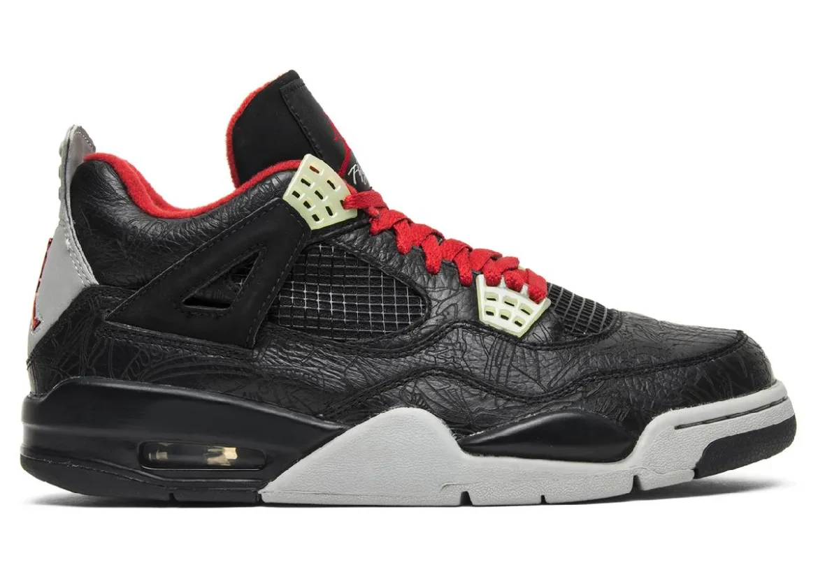 The “Black Laser” was one of two Air Jordan 4 “Laser” releases from 2005, joining the more widely remembered “White Laser” pair. Unlike the white version, this black-based release did not include the matching apparel pack, helping lower its original retail price to $175.
