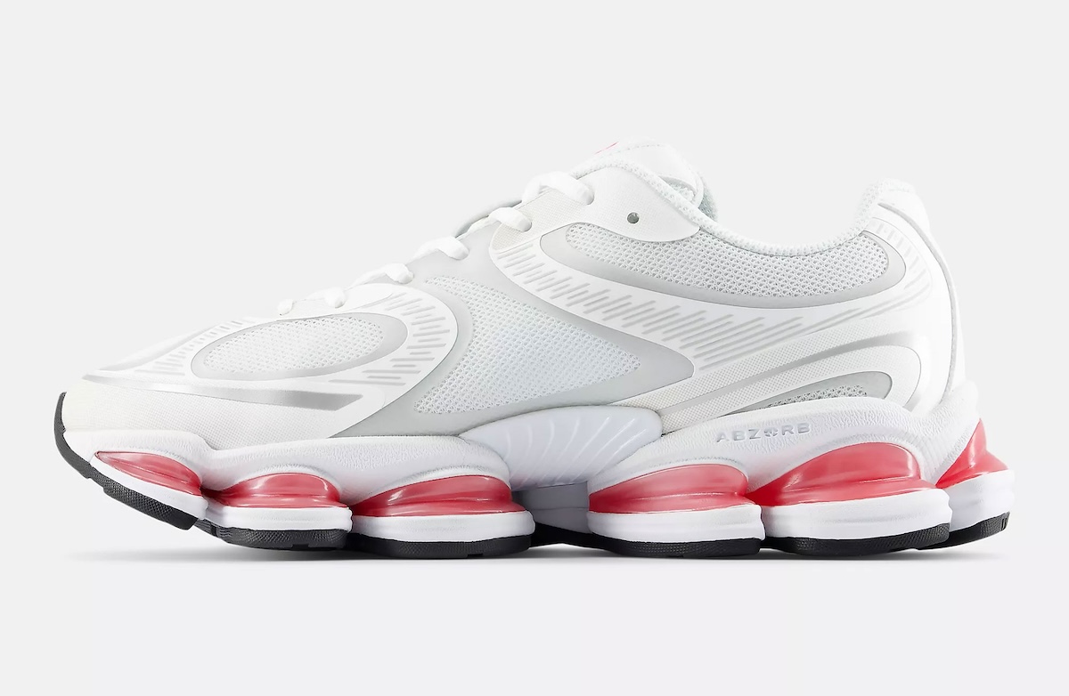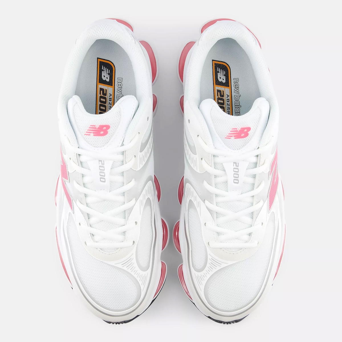 Segmented pink ABZORB pods drive the design underfoot and instantly become the focal point of the sneaker. That sole setup gives the New Balance 2000 a strong tech-runner identity, while the black outsole adds contrast and keeps the lighter upper grounded. The stacked construction also allows the sneaker to feel agile and organized simultaneously, something that was inspired by early-2000s performance gear the silhouette pulls from.