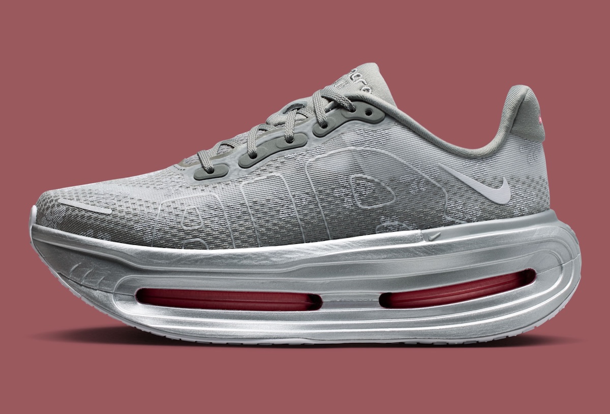 The Nike Vomero Premium “Geyser Grey” brings a colder, sharper look to Nike’s premium running catalog. Its Geyser Grey, Metallic Silver, Dark Steel Grey, and Peony palette gives the bulky runner a clean finish with just enough color.