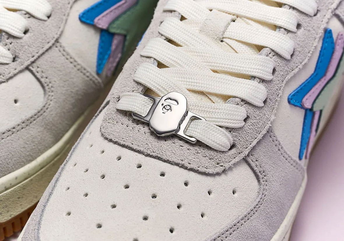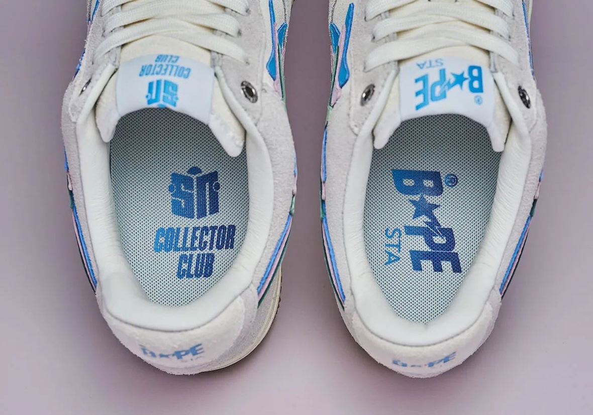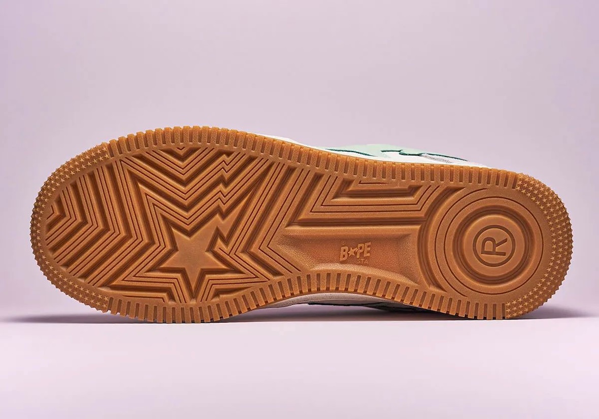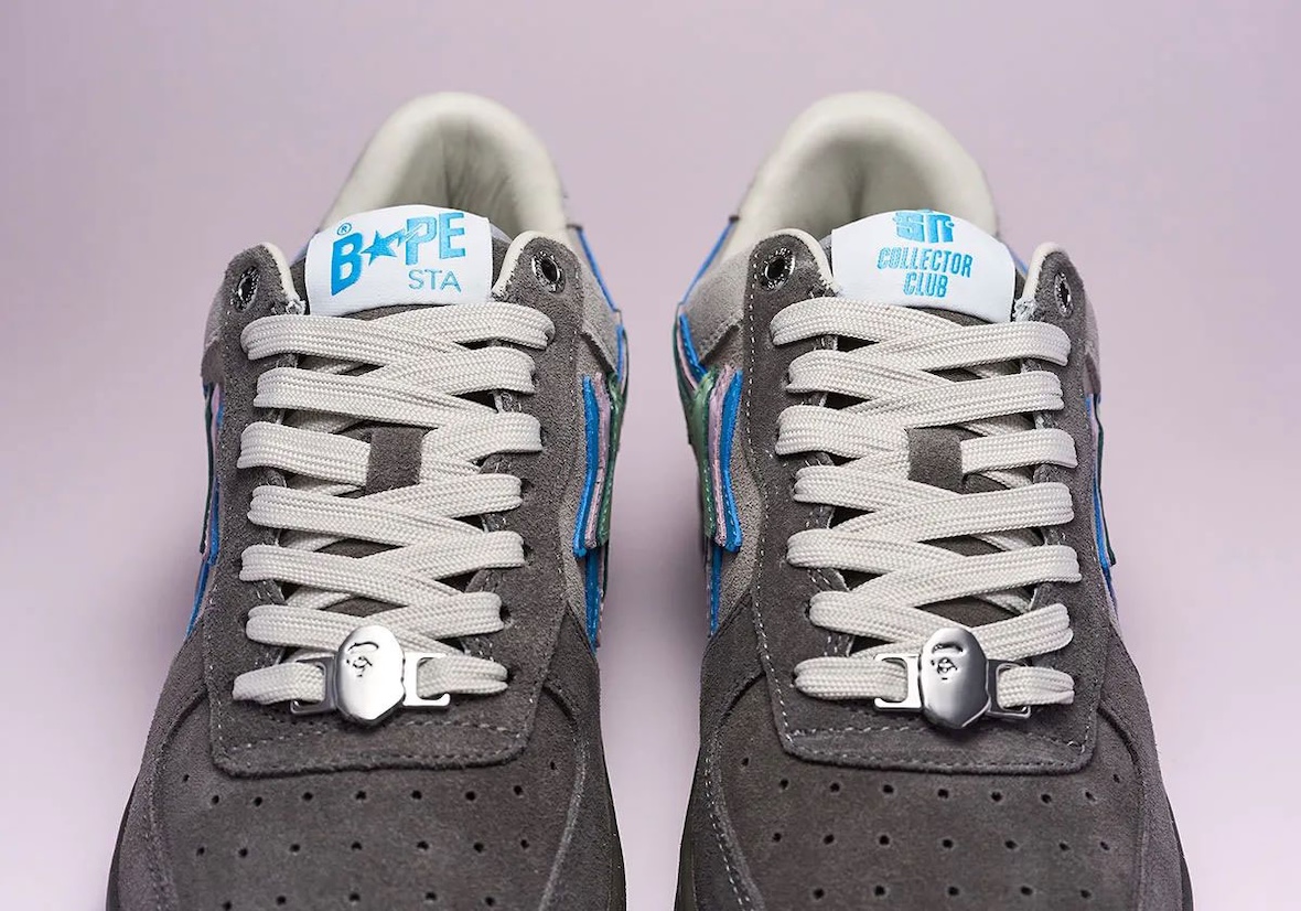 The Sneaker News BAPE STA “Day” and “Night” pairs take opposite approaches while sharing the same new triple-stacked STA logo, a first for the BAPE STA. The “Day” edition uses an off-white base with grey suede overlays, pastel hits of mint, lavender, and sky blue, and a gum outsole for a clean streetwear feel. The “Night” colorway shifts darker with charcoal grey gradient suede, a speckled outsole, and the same pastel accents, which stand out more against the moodier upper.